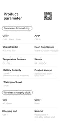 جهاز استشعار حيوي عالي الدقة مدمج، واختبار ذكي لدرجة حرارة الجسم، ومراقبة معدل ضربات القلب، وتشبع الأكسجين في الدم وعلم وظائف الأعضاء الأنثوية، وحماية صحية متواصلة على مدار 24 ساعة.